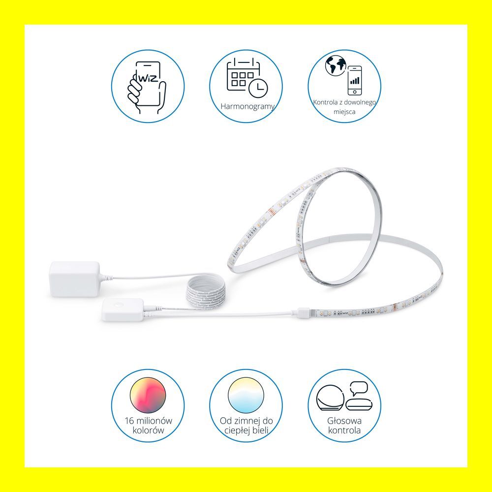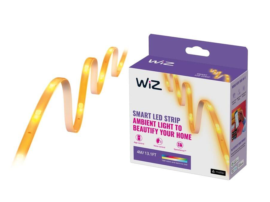 Стартовий комплект WiZ із 4-метровою світлодіодною стрічкою дозволяє створити яскраве, барвисте та інтелектуальне світло у вашому домі. Гнучку стрічку можна розрізати до будь-якого розміру, щоб створити індивідуальне лінійне освітлення в будь-якому просторі. За допомогою програми WiZ або за допомогою голосових команд ви можете приглушувати та посилювати світло або використовувати попередньо запрограмовані режими освітлення в установках Wi-Fi.