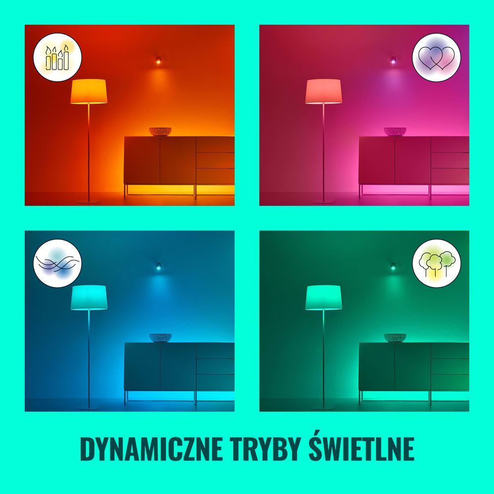 Вибирайте з багатьох відтінків білого світла, від бадьорого й землистого до теплого й затишного, або просто виберіть один із попередньо встановлених режимів, як-от Focus або Relax, щоб створити бажаний настрій у кімнаті.