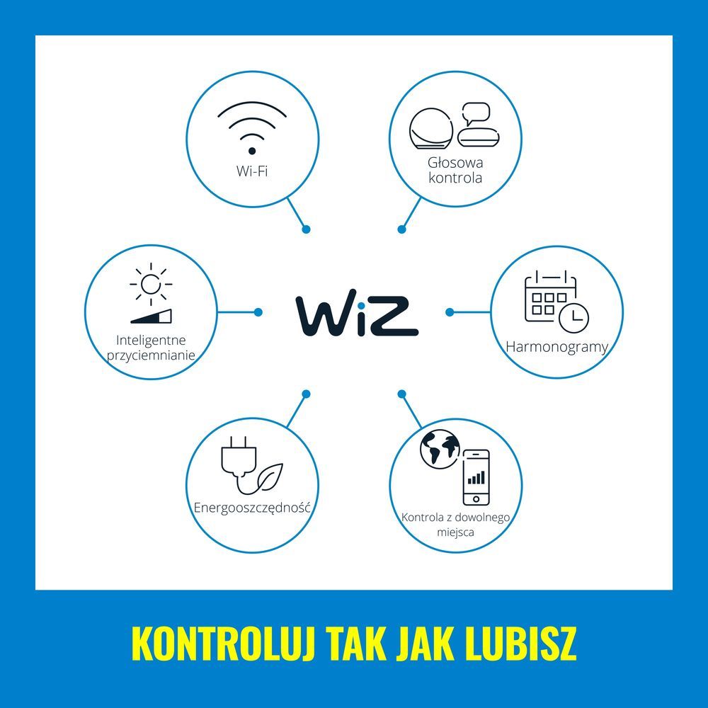Просто підключіть свій пристрій WiZ до мережі Wi-Fi для миттєвого доступу до розумних функцій. Ви можете легко керувати освітленням, коли вас немає вдома, запланувавши автоматичне вмикання та вимикання світла. Немає необхідності встановлювати додаткове обладнання, наприклад концентратор або шлюз доступу до мережі!