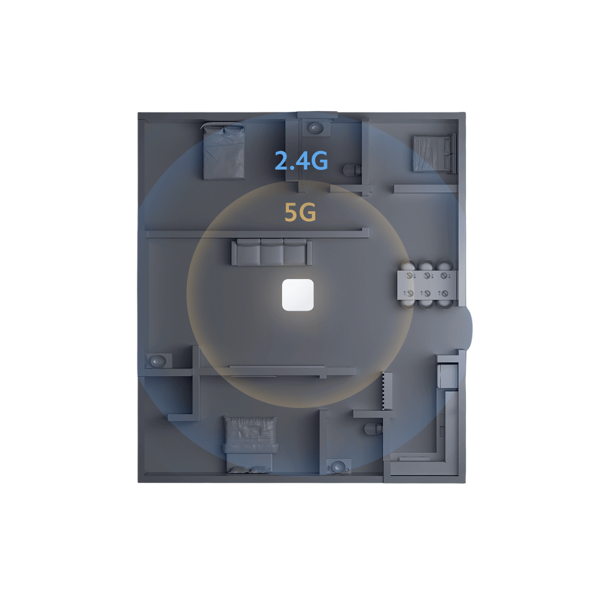 Підтримка дводіапазонного модуля Wi-Fi 2,4 ГГц і 5 ГГц дозволяє підключати більше пристроїв. Частота 2,4 ГГц краще проникає в стіни. 5 ГГц має більш високу швидкість передачі даних. Хаб значно покращує швидкість інтелектуальних з’єднань і забезпечує кращу роботу на ваших пристроях.