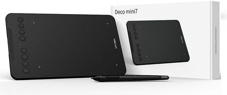 Графічний планшет XP-Pen Deco mini7 Ми хочемо представити вам професійний і надзвичайно зручний графічний планшет XP-PEN Deco Mini 7 в чорному кольорі, сумісний із найпопулярнішим програмним забезпеченням. Обладнання має робочу зону 177,8 x 111,1 мм, роздільну здатність 5080 lpi і 8192 рівня тиску. Прикріплена до нього ручка є бездротовим аксесуаром без батареї, надзвичайно чутливим до тиску.