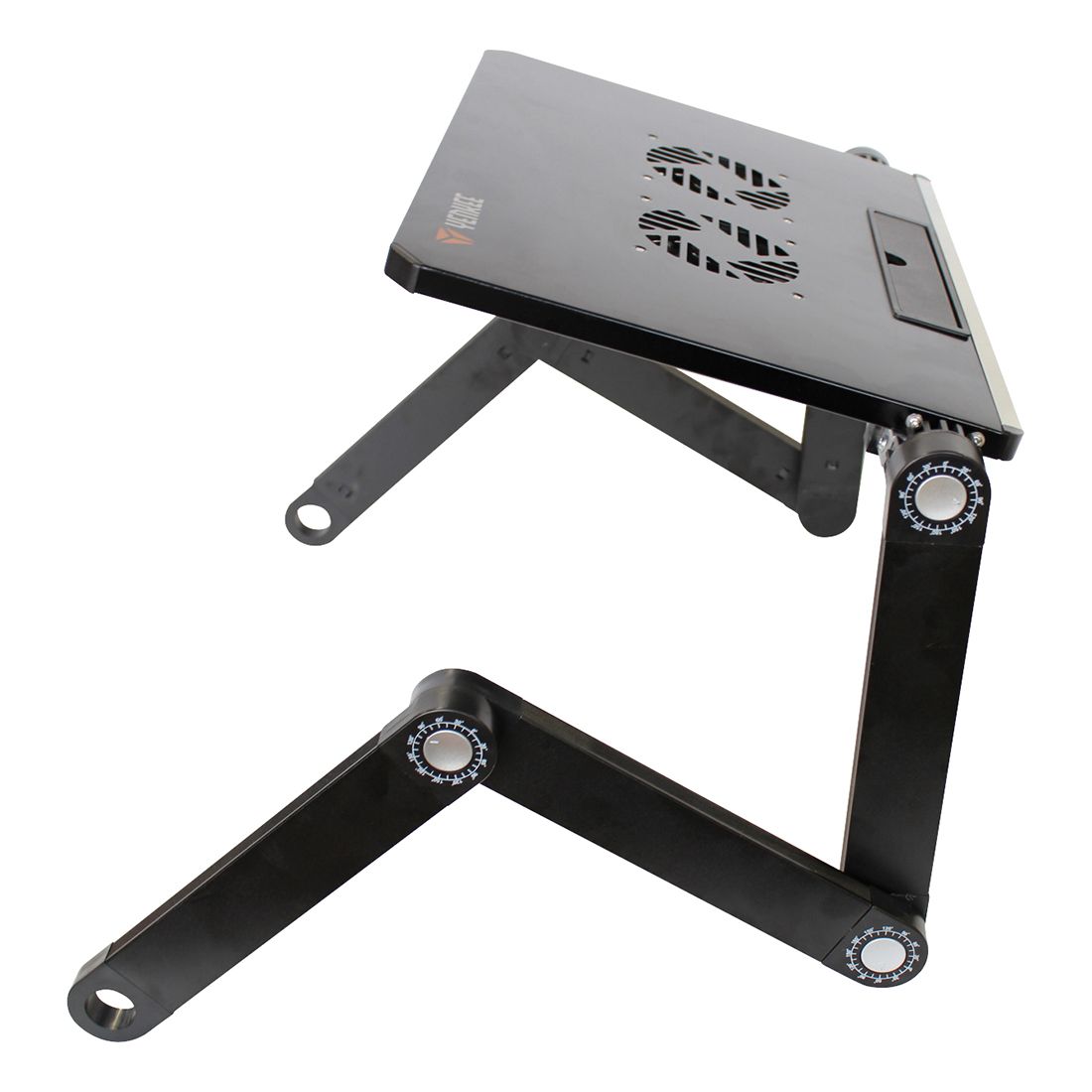 Охолоджувальний стіл для ноутбуків до 17". Алюмінієвий корпус і два 80-мм вентилятори гарантують достатнє розсіювання тепла та оптимальне охолодження ваших пристроїв. Шість поворотних шарнірів (360°) дозволяють встановити ноутбук в оптимальне положення для роботи чи гри, а його висока стабільність гарантується навіть на злегка нерівних поверхнях.