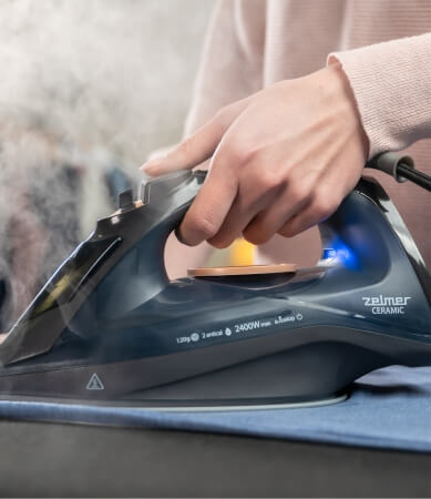 Прасування фіранок або штор — це велика проблема. Так само, як довгі пальто або сукні. Тому праска Zelmer має функцію вертикальної подачі пари. Можна гладити вже розвішані штори або сукні на вішалці. Десяток-інший сантиметрів відстані між підошвою праски та тканиною і все – зручно та ефективно.