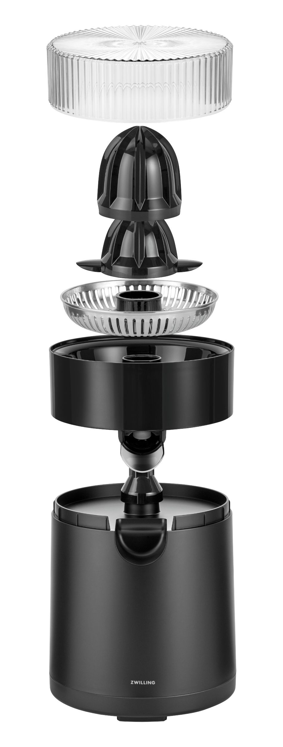 Чорна соковижималка для цитрусових Enfinigy. Виготовлений з високоякісних матеріалів без BPA. Тиха робота завдяки двигуну BLDC. Вічний мінімалістичний дизайн.