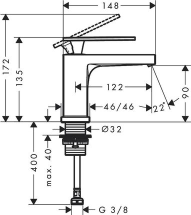 Змішувач Tecturis E без змішувача 80 для холодної або попередньо змішаної води без зливного комплекту Chrome ???? ComfortZone ??Висота виливу: 90 мм??Тип ручки: WaterfallStream??Керамічний змішувач?? підключення до води ??тип підключення: підключення G ⅜