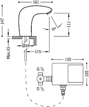 Електронний інфрачервоний змішувач для умивальника Tres Trestronic M хром Опис Електронний інфрачервоний змішувач для умивальника Tres Trestronic M хром TRESTRONIC Електронний змішувач для умивальника: установка на 1 отвір зі змішувачем Живлення: батарейки або від мережі 230 Екологічний - економія води до 50 % висоти носика аератора корпус: 147 мм Діапазон виливу: 160 мм Колір: хром Технічні дані EAN 8429546417875 Бренд Tres Серія Trestronic Призначення умивальника Установка вертикальних змішувачів Розмір змішувача M Термостат так Кількість водоприймачів 1 Кількість ручок електронні Діапазон виливу (довжина) (мм) 160.00 Висота змішувача (мм) 147.00 Висота носика (мм) 115.00 Кількість отворів 1 Тип зливу немає Колір за виробником хром Гарантія Завантажити Гарантія на продукцію торгової марки Tres становить: - 2 роки на дефекти комплектуючих, що виникли в процесі виробництва, - 1 рік на виробничі дефекти знімних елементів: ручки, пластикові та емальовані частини, зовнішні трубки, можливі аксесуари та витратні матеріали, такі як реле тиску, аератори, шланги, душові ручки. Технічний паспорт МОНТАЖ Інструкції зі складання