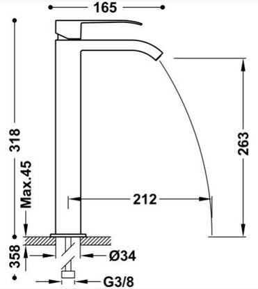 Одноважільний змішувач для умивальника XXL: змішувач має високий дизайн, що означає, що він вищий за стандартні змішувачі для умивальника. Цей дизайн може бути привабливим під час миття рук у більших раковинах або з більшим посудом. Закритий вилив з каскадним виливом води: змішувач оснащений закритим виливом, який створює ефект каскадного виходу води, надаючи інтер’єру елегантний вигляд. Обмеження витрати до 5 л/хв: кран оптимізовано для економії води. Потік води, який буде витікати з крана, буде обмежено до 5 літрів на хвилину. Завдяки цьому ви можете зменшити споживання води та зробити свій внесок у захист навколишнього середовища.