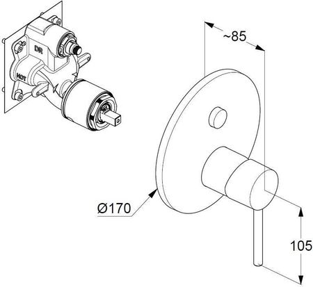 Змішувач для душової кабіни(душа) Kludi Bozz 38659N076