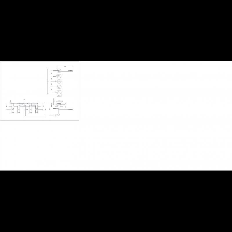 Розмір розетки: ø7,2 см Діапазон носика від поверхні плитки: 15,5-16,7 см Мінімальна глибина монтажу: 6,4 см Два входи (для гарячої та холодної води): латунна душова ручка 1/2", 1-функціональний душ із шлангом зі сталевою кришкою, довжина: 125 см, прихований елемент включено