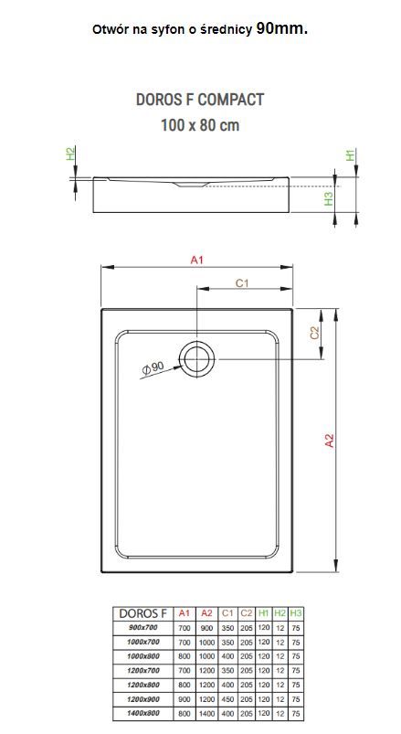 Опис товару Radaway Doros F Компактний душовий піддон 100х80 см прямокутний SDRFP1080-05
