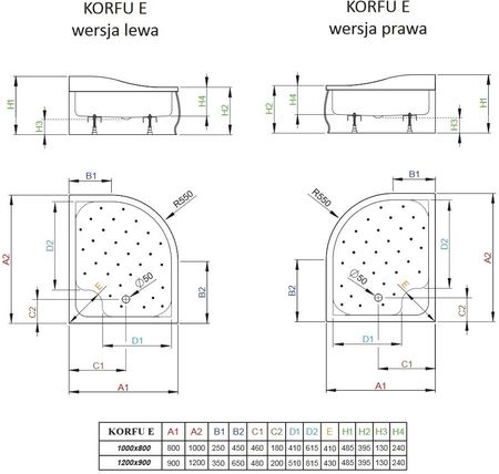 | Форма | Półokrągłe i 1/4 koła |