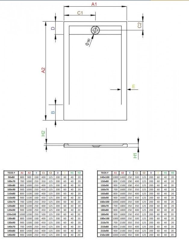 Прямокутний душовий піддон з мармурового конгломерату. Для установки прямо на підлогу.
