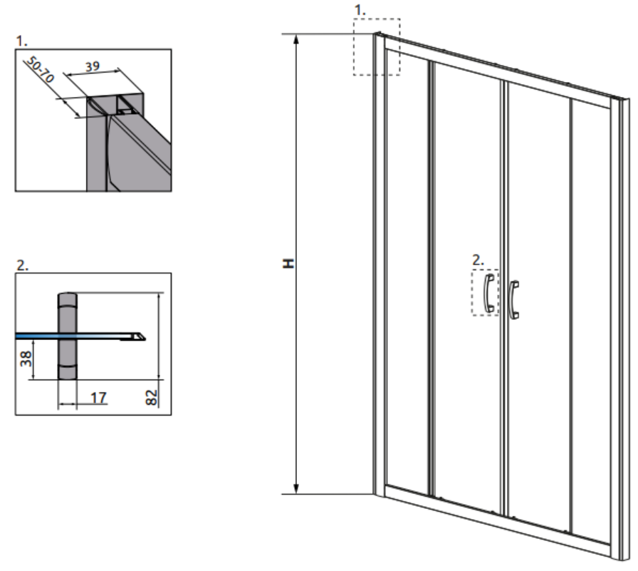 Можливість використання подовжуючих профілів, які збільшать номінальний розмір душової кабіни чи дверей на розмір, вказаний на піктограмі.