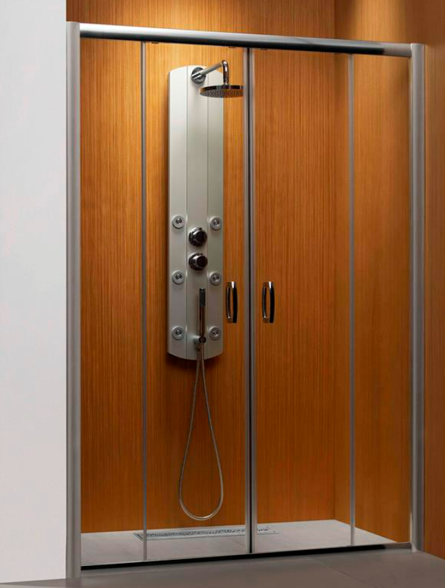 Розсувні двері із загартованого скла товщиною 5 мм (нерухомі частини) і 6 мм (рухомі частини)