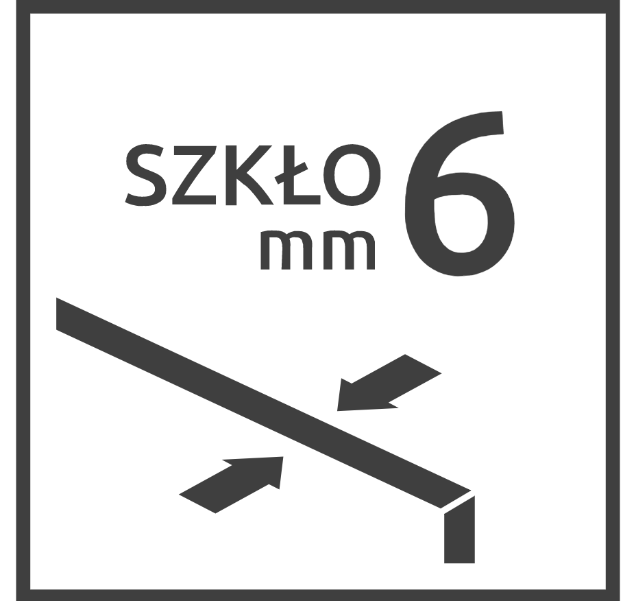 Скло безпечне, загартоване, товщиною 6 мм, відповідає стандарту PN:EN 12150:1.