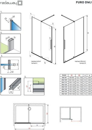 Розміри дверей Radaway Furo Dwj