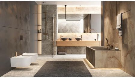 Вигнута душова стінка Vidoq 93x200 см, покриття Clean Control, матова мідь Вигнута стінка для гардеробу - відмінне рішення для людей, які цінують сучасність і функціональні рішення. Цю мінімалістичну стіну можна встановити окремо або в поєднанні з прямою стіною, створюючи таким чином готову кабіну Walk-In, яка має багато переваг. Використані профілі та аксесуари ідеально поєднуються за кольором і поєднуються з іншими елементами сантехніки мідного кольору.