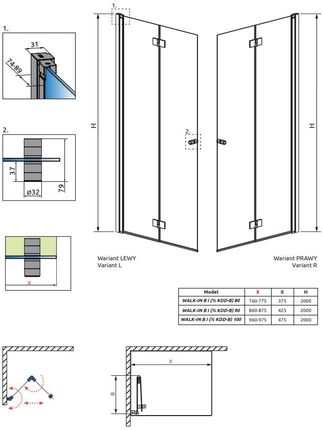 Рекомендується кожні 6 місяців оновлювати покриття Easy Clean Glass Protector. На фото № 1 показано скло без покриття, на фото № 2 – з покриттям Easy Clean. Стандартно кабіни розраховані на встановлення на душовий піддон певних розмірів, які вказані в назві кабіни або її частини. Фактичні габаритні розміри кабіни трохи менше номінальних розмірів, вказаних у назві артикула. Якщо ви плануєте встановити кабіну прямо на підлогу, зверніть увагу на габаритні розміри (X1, X2) і розміри до осі скла (Y1, Y2), які вказані на технічному кресленні.