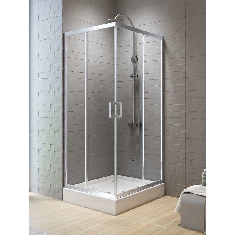 Описові розміри: 90x90x190 см. скло: прозоре 6 мм. Версія покриття Active Shield: універсальне (ліворуч/праворуч) знімний нижні подвійні ролики регульовані верхні подвійні ролики регулювання стінки магнітні ущільнювачі 2 роки гарантії
