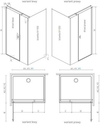 Рекомендується кожні 6 місяців оновлювати покриття Easy Clean Glass Protector. На фото № 1 показано скло без покриття, на фото № 2 – з покриттям Easy Clean. Стандартно кабіни розраховані на встановлення на душовий піддон певних розмірів, які вказані в назві кабіни або її частини. Фактичні габаритні розміри кабіни трохи менше номінальних розмірів, вказаних у назві артикула. Якщо ви плануєте встановити кабіну прямо на підлогу, зверніть увагу на габаритні розміри (X1, X2) і розміри до осі скла (Y1, Y2), які вказані на технічному кресленні.