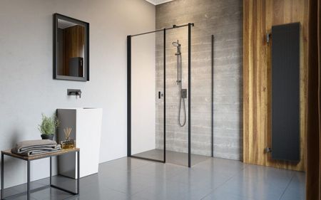 Фото нижче наведено лише для ілюстрації та не відображає фактичних розмірів кабіни. У кабіні є всі необхідні компоненти для монтажу як з порогом, так і без нього. Кабіни NES можна монтувати як на душові піддони, так і безпосередньо на підлогу. Серія Nes Black — це сучасний дизайн і елегантність у поєднанні з заворожуючим чорним. Кабіни цієї серії додадуть вашій ванній кімнаті неповторний характер. Чорні лінії, характерні для моделей Frame і Factory, зроблені фарбою для кераміки. Завдяки злиттю оздоблення зі склом у процесі гартування, кабіна характеризується довговічністю, високою якістю та стійкістю до стирання та УФ-випромінювання.