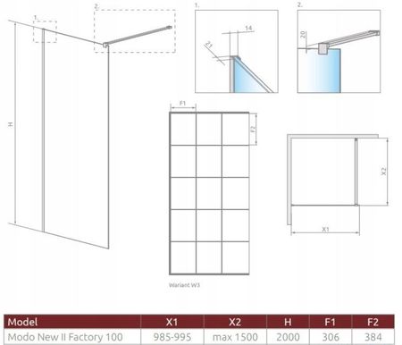 Можливість придбати телескопічну опору - стандартні кабіни мають стабілізатор, який кріпиться до стіни. Якщо обстановка у ванній кімнаті не дозволяє встановити такий стабілізатор, можна придбати телескопічний стабілізатор, який кріпиться до стелі. УВАГА !!Якщо на душовий піддон встановлюється душова кабіна з кронштейном для стелі, необхідно замовляти кабіну нестандартних розмірів. Кабіна Modo New Black II Factory Walk - Ширина 100 см. Кабіна універсальна, можна встановити як лівий, так і правий варіант.