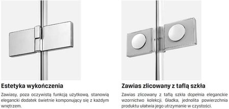 Петлі з функцією підйому - це означає, що двері піднімаються під час відкривання та закривання. Завдяки цьому ущільнювач, розташований на їх нижньому краю, не треться об землю під час роботи. Рішення не тільки полегшує використання виробу, але й продовжує термін служби самої пломби. Петля виготовлена з металу, що забезпечує її довговічність. Петля розташована врівень зі склом, що доповнює елегантний дизайн колекції. Гладка однорідна поверхня виробу дозволяє легко підтримувати його в чистоті.