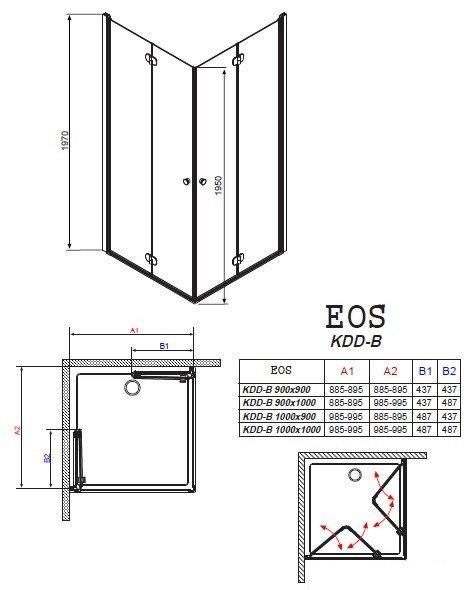Трубна петля з інноваційною системою позиціонування Загартоване скло Хромована фурнітура та профілі Завдяки сучасній системі відкривання ідеально підходить навіть для маленької ванної кімнати Кабіну Eos KDD-B також можна встановити прямо на підлогу