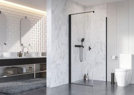 Вішалка для рушників. Це практичне рішення, яке тримає рушник під рукою після душу та полегшує його висушування після ванни. Чорна вішалка кріпиться до скла за допомогою спеціальної техніки приклеювання на етапі виробництва. Тому замовляти її потрібно одночасно з душовою кабіною. На фото зліва внизу показана вішалка для рушників, прикріплена до вікна. З правого боку, до скла і суцільної стіни. Можлива заміна прозорих пломб на чорні. Обраний варіант повинен бути чітко вказаний в замовленні. Ми пропонуємо душові кабіни, перегородки, конструкції для ванн, душові піддони, душові піддони під плитку та лінійні водостоки від Radaway.