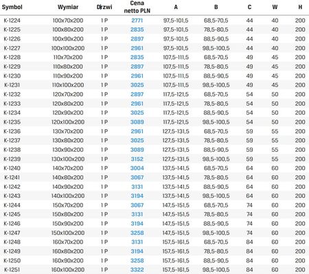 | Тип входу | Drzwi suwane |