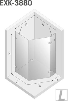 НОВІ ТЕНДЕНЦІЇ П’ЯТИКУТНА АСИМЕТРИЧНА ДУШОВА КАБІНА AVEXA 100X80, ЧОРНА ЛІВА EXK-3881 – це п’ятикутна душова кабіна, яка ідеально підходить для невеликих і вимогливих приміщень. Модель душової кабіни New Trendy - ідеальне рішення для ванної кімнати в сучасному стилі. Асиметрична кабіна оснащена чорними профілями та ручками. Виріб розміром 100 см в ширину, 80 см в глибину і 200 см у висоту має високоякісне загартоване скло з покриттям, яке легко миється, і зручні дверцята з лівою петлею. Представлену душову кабіну можна встановити прямо на підлогу або на душовий піддон.
