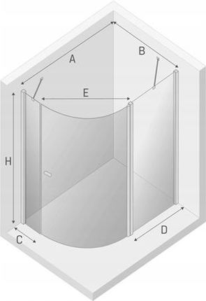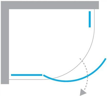 Петля, що має форму колони, забезпечує широкий і зручний вхід. Має функцію підйому, що запобігає зносу ущільнення. Дверні полотна відкриваються як назовні, так і всередину. Практична обробка Якісний хромований кронштейн забезпечує міцну конструкцію кабіни. Сучасна форма виконання гармонує з чистою лінією скляних поверхонь. Установка з пороговою планкою або без