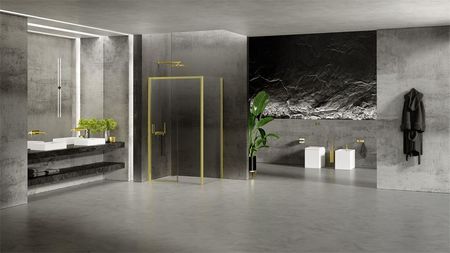 Душова кабіна PRIME LIGHT GOLD Колекція поєднує міський стиль із сучасними технологічними рішеннями. Prime Light Gold має вишукані золотисті деталі та характерну розсувну систему, яка забезпечує плавне відкривання дверей. Використання інноваційного механізму позбавило необхідності встановлення нижньої доріжки кочення. Завдяки цьому Prime Light Gold - це поєднання ідеального дизайну та ергономіки. Елементи кріплення кабіни до стінок душової виготовлені з високоякісного металу. Колекція Prime Light Gold — це сімейство золотистих кабін і врізних дверей із делікатним глянцевим покриттям.
