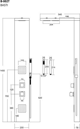 Технічні параметри: Матеріал корпусу: Бамбук, Колір: натуральний, Оздоблення: квадрат, Колір обробки: Хром, Кран: Термостатичний, Поверхня корпусу: напівматова, Захист поверхні: Anti Wipe, Технологія фарбування: Color Plus, Висота панелі: 1400 мм, Ширина панелі: 200 мм, Глибина панелі: 78 мм, тропічний душ: 540 мм,