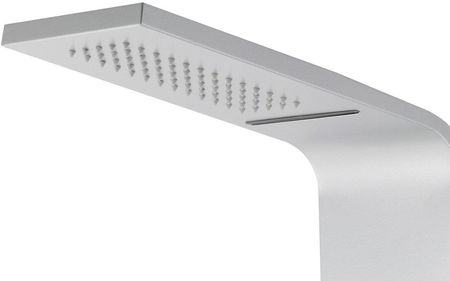 Дощова лійка, містить 65 форсунок.Проекція душової лійки - від стіни до торця душової лійки: 48см відтік). Корисно, коли ми використовуємо душ, але не хочемо мити волосся. Усі форсунки оброблені системою ANTI-CALC (силіконові гумки, через які стікає накип, не осідаючи всередині панелі - таким чином подовжуючи її довговічність і надійність). вмикається за допомогою першої ручки, також регулює тиск води від легкого дощу