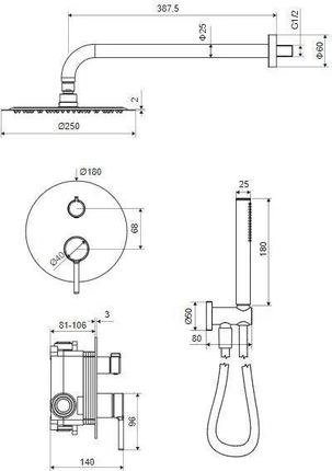 Круглу головку діаметром 250 мм із круглою ручкою можна встановити на будь-якій висоті, а набір точок стане ідеальним рішенням для користувачів, які не хочуть мочити волосся під час короткого купання. 3DS