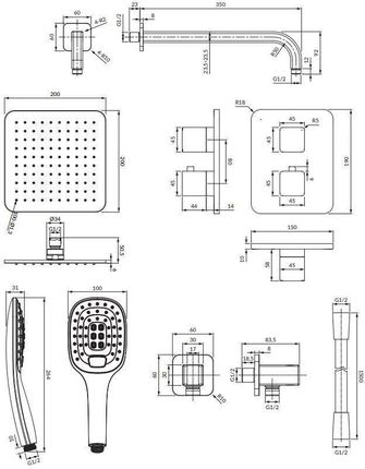 Колір білий хром Особливості потоку витрата води при тиску 3 бар: 10 л/хв подача гарячої води: макс. 90 °C Робочий тиск: 1-6 бар Технічні характеристики прихований термостатичний змішувач для душу та ванни (PM7436CRB) латунний тропічний душ (WG220/OCRB), розмір: 20 x 20 см, латунний душовий кронштейн (RA15CRB) ручний душ (DAVIS-RCRB), 3 функції, тип струменя: дощ, масаж, змішаний душовий шланг в ПВХ чохлі (SILVER-X150SL), довжина: Латунне кутове з’єднання 150 см (8815CRB), з тримачем для душу