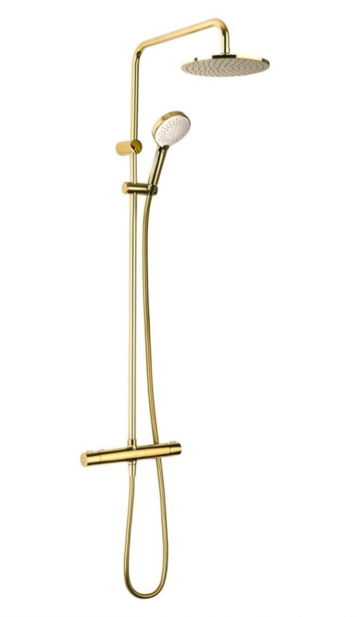 Опис: Термостатичний змішувач з системою Oltens ThermoProtect (система запобігає нагріванню змішувача для безпеки Вас і Ваших близьких) З максимальним блокуванням температури 38 градусів Круглий тропічний душ діаметром 220 мм, з ABS, з регулюванням кута нахилу душова лійка Oltens Driva EasyClick, діаметр лійки 110 мм3 типи струменя: дощ, м'яка, масажна з системою швидкого знімання Душовий шланг stoneOltens Ronneby 160 см. Термостатичний змішувач має сітчасті фільтри та зворотні клапани, необхідні для встановлення. Обмежувач потоку гарячої води, який блокує потік із змішувача, якщо холодна вода виведена з системи. Колір: глянсове золото (PVD)