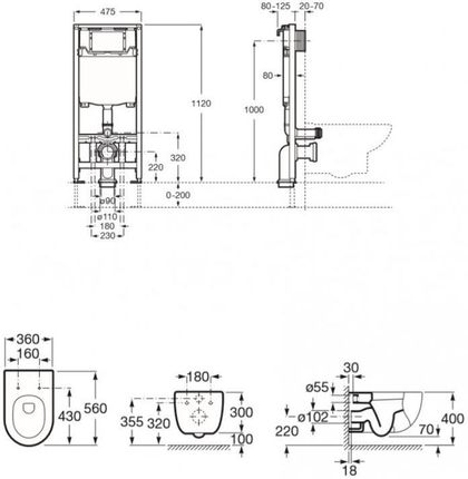 для підвісних унітазів, легка установка, неглибока установка: регульовані кріплення в діапазоні 80-163 мм, мінімальна глибина установки 80 мм може бути досягнута шляхом часткового вставлення зливної труби в стіну, мінімальна глибина установки 120 мм з вертикальним встановленням зливного коліна, повна рама унітазу з монтажним комплектом, ширина рами: 475 мм заводська настройка врівень 6/3 л, регулюється до 4,5/3 або 4/2 л відстань між монтажними гвинтами: 180 або 230 мм сервісний тунель, що полегшує установку кнопок регулювання ніжок рами в діапазоні: ніжки рами 0-200 мм оснащені гальмом дренаж системи DN90 з DN90/перехідником DN100 ефективний і тихий наповнювальний клапан (акустичний клас 1, <20 дБА) заглушки для з'єднань, що полегшують монтаж рами допустиме навантаження: 400 кг Доповнюється кнопкою змиву DUPLO ONE