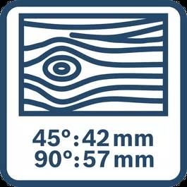Глибина різання при 45° 42 мм, 90° 57 мм