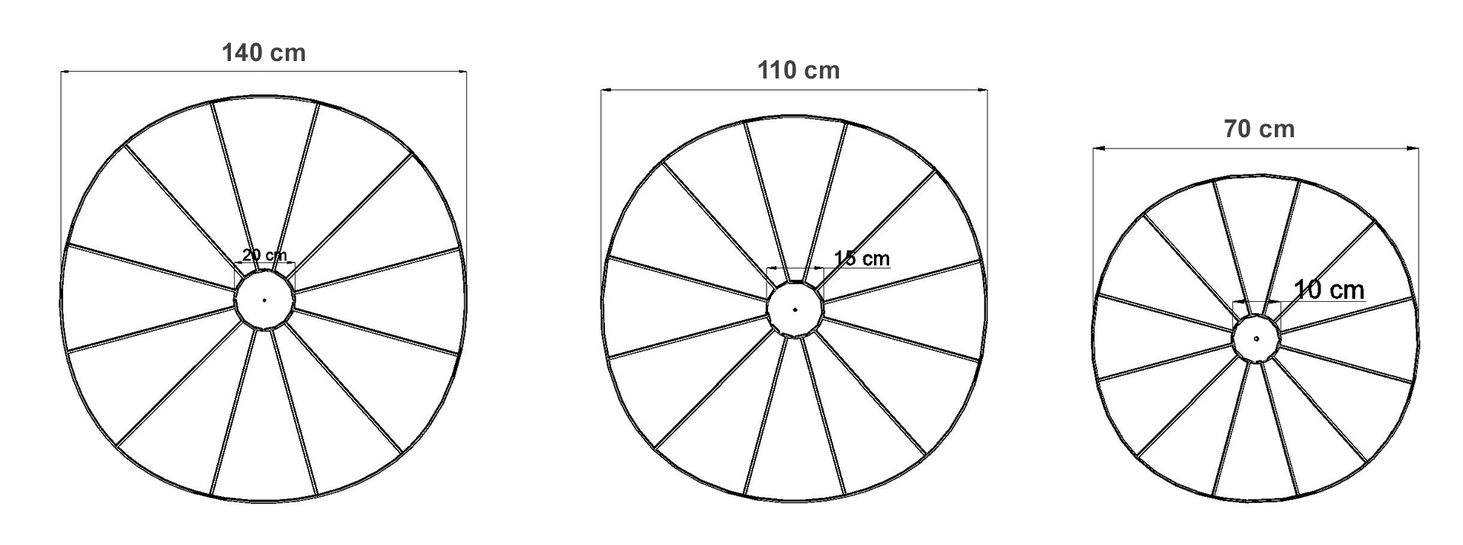 Усі типи ламп доступні з абажурами наступних діаметрів:
