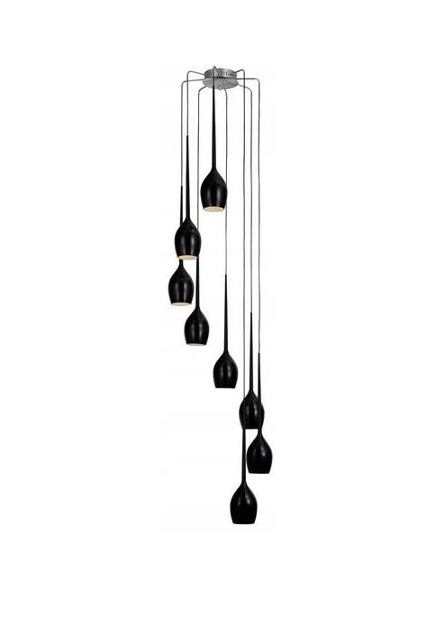 Технічні дані: Висота: 280 см. Ширина: 56 см. Висота абажура: 62,5/21 см. Регулювання висоти: ТакМатеріал: СклоДодатковий матеріал: МеталОсновний колір: ЧорнийДодатковий колір: СрібнийЦоколь: E14Потужність лампочки: 40 ВтНапруга живлення: 230 ВКількість лампочок: 8 Регулювання кута освітлення: Несумісно зі світлодіодом: Так Джерело світла включено: Ні Клас захисту: IP20