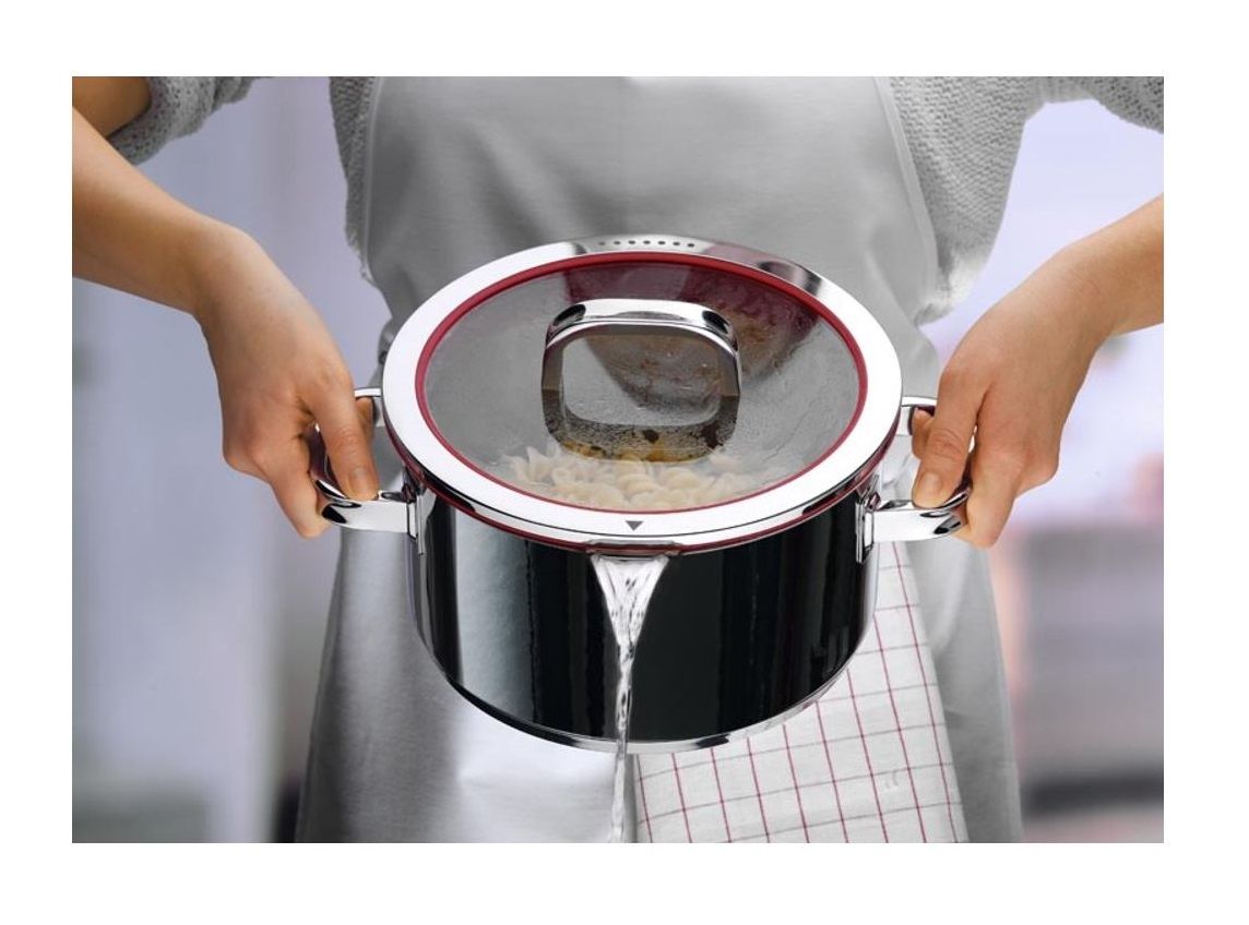 Кришка виготовлена з високоякісного скла та силіконових елементів, стійких до високих температур, що надає їй сучасного та досить унікального дизайну. Крім того, кришка була спеціально розроблена для проціджування без використання друшляка. Каструлі серії FusionTec можна використовувати в духовці при температурі до 250°C без кришки або з кришкою до 180°C.