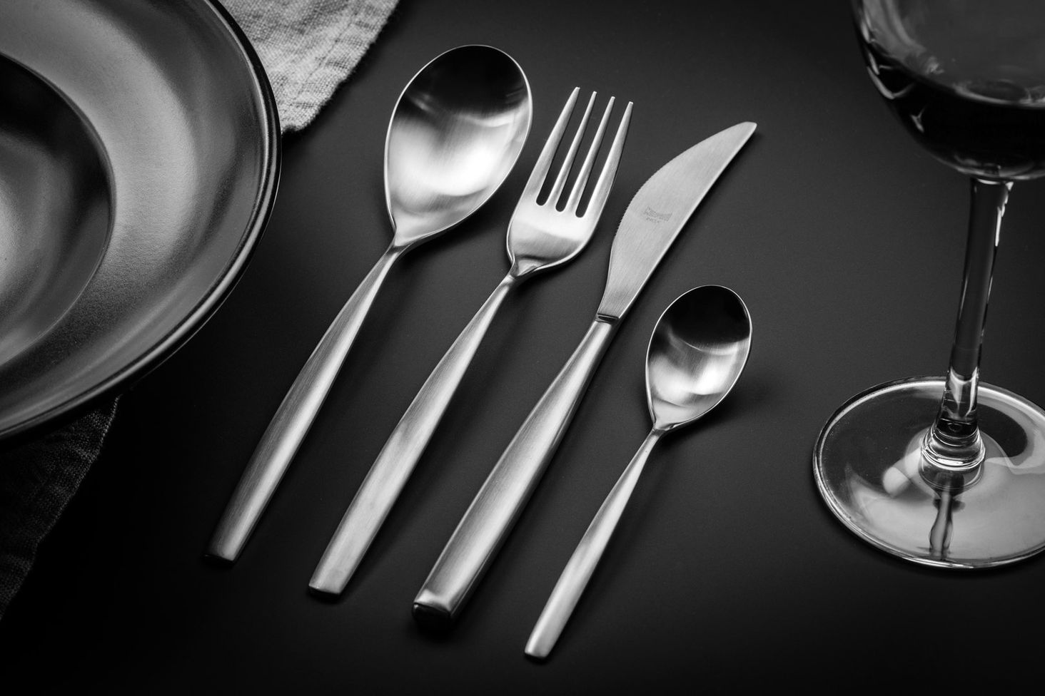 Набір столових приборів 24 шт. з колекції Stiria в сріблі. Виготовлений з товстої нержавіючої сталі. Елегантний дизайн студії Tecnico Mepra. Матове покриття. На 6 осіб.