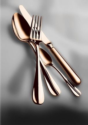 Продукція Mepra служитиме багато років і може бути передана майбутнім поколінням. Столові столові прибори Roma Bronzo Mepra мають неочевидний коричневий колір Його було нанесено за допомогою технології PVD (Physical Vapor Deposition). Завдяки цьому столові прибори стійкі до стирання та пошкоджень. Ви також можете багато разів мити їх у посудомийній машині. Переваги набору Roma Bronzo Mepra: • обідні та десертні столові прилади на 6 осіб