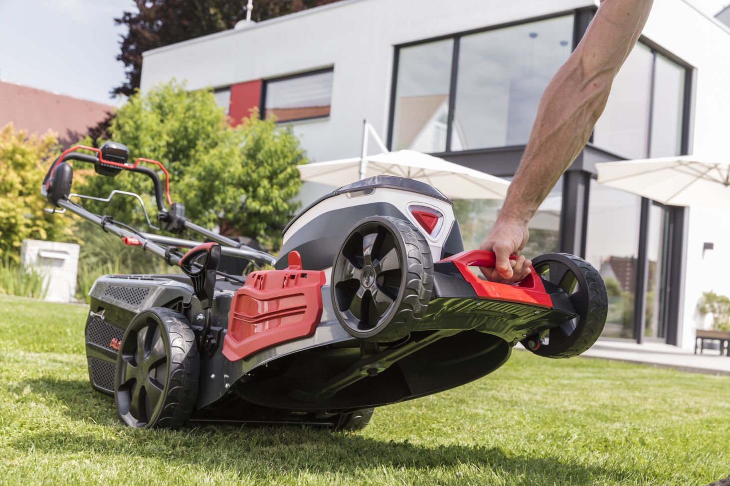 Безпечний запуск завдяки торцевому ключу - літій-іонний акумулятор 36 В забезпечує ефективну роботу на газонах площею до 1000 м². Завдяки літій-іонним елементам цей акумулятор надзвичайно довговічний і не саморозряджається. Вбудований світлодіодний дисплей дозволяє легко побачити, коли його потрібно зарядити. Зручне 7-ступеневе центральне регулювання висоти зрізу, завдяки якому можна встановити висоту зрізу від 30 до 80 мм.