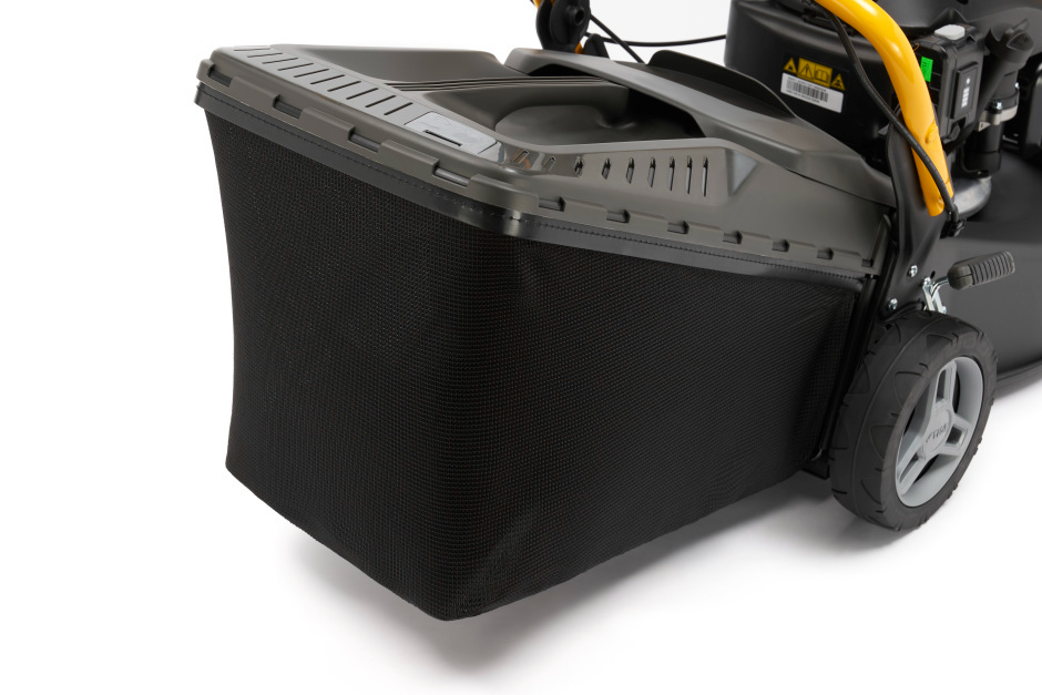 Кошик дозволяє зібрати до 60 л скошеного матеріалу. Індикатор заповнення вгорі інформує нас, коли кошик заповнений.