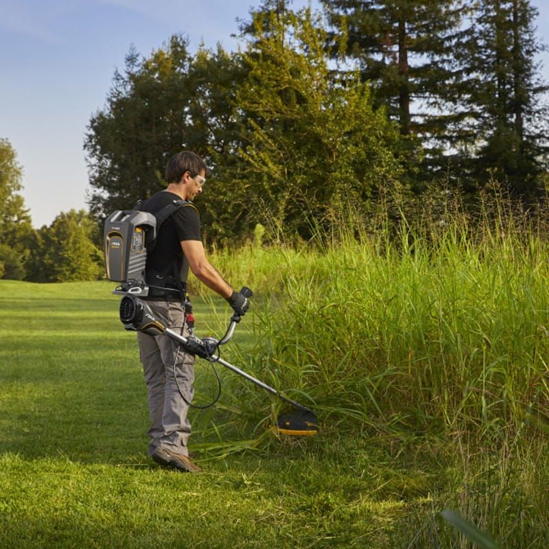 Цей тример живиться від двох одноелементних батарей 48 В ємністю 7,5 А·год, які розміщені в рюкзаку SBH 900 (продаються окремо), і забезпечує 1,5 години косіння.