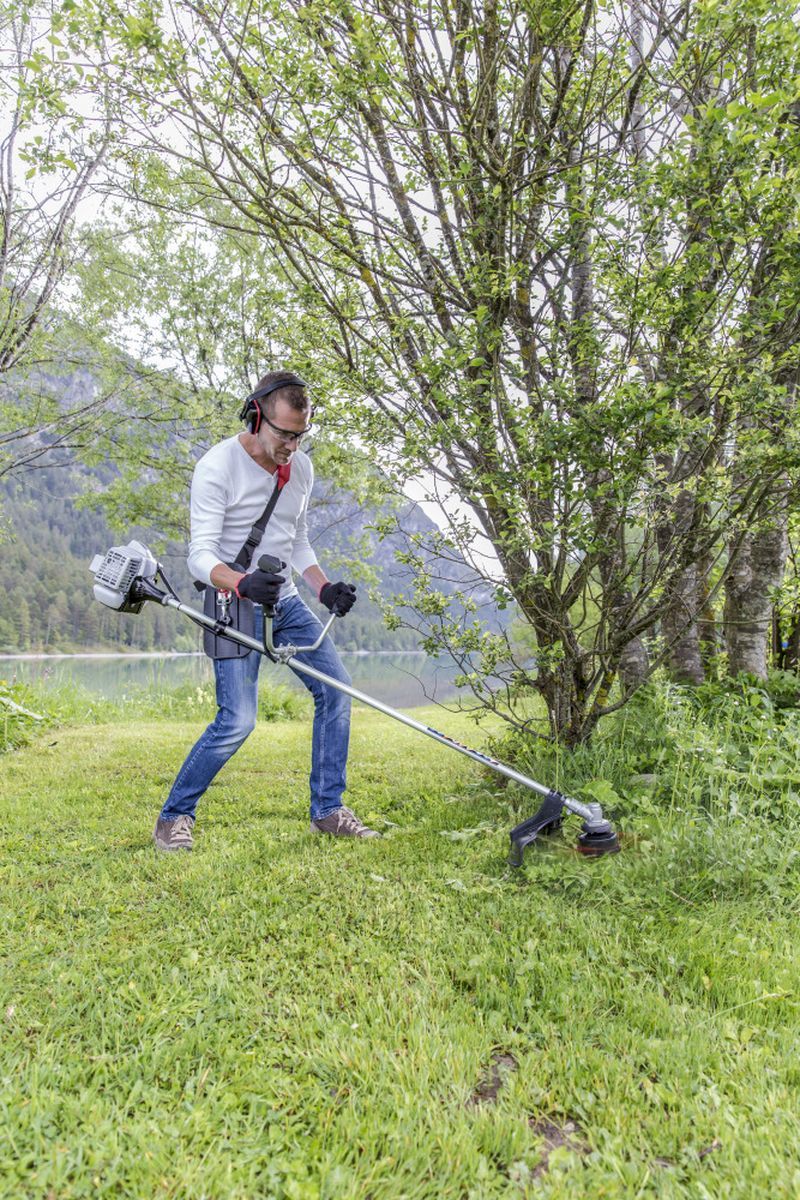 Завдяки легкому запуску 2-тактного двигуна останнього покоління потужністю 0,7 кВт ця коса є незамінним помічником, яким ви можете легко та безпечно користуватися навіть як початківець або садівник-любитель. Ви здолаєте будь-яку місцевість із великою потужністю – чи то на великих газонах, чи у високій траві, чи в кущах.