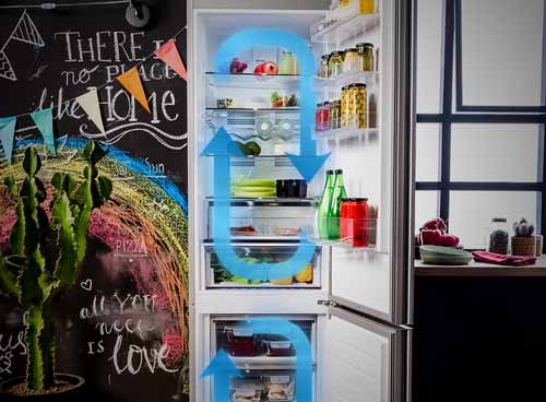 Технологія Total NoFrost забезпечує постійний контроль вологості як у холодильнику, так і в морозильній камері, тобто немає інею всередині та не потрібно розморожувати!